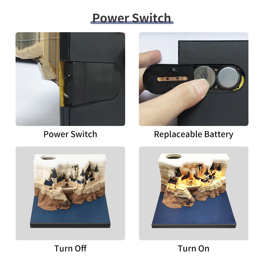 omoshiroi block 2025 Calendar howarts memo with light block for notes 3d miniature notepad Scrapbooking paper notepad 3d omoshiroi 3d note paper 3d sticky notes Custom memo