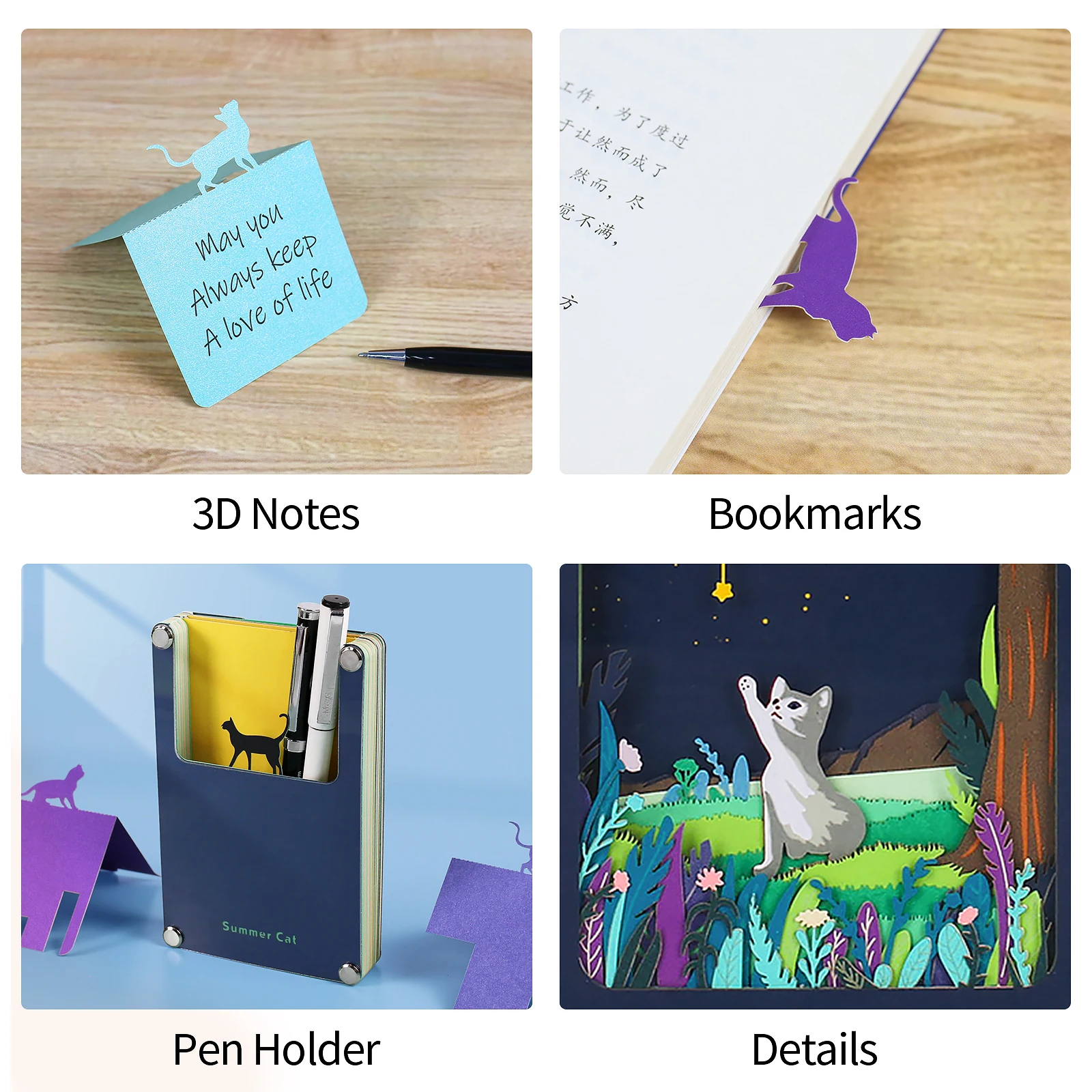 Mini Cat With Dark Night Omoshiroi Block 3D Memo Pads